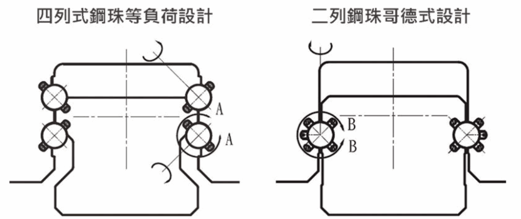 直線滑軌之所以能提供高精密度,除了低摩擦特性外,還因為其四方向等負荷設計。滑塊可以承受來自上下左右各個方向的負荷,而且負荷分布均勻。鋼珠在精密研磨的接觸面上滾動,接觸點的幾何形狀經過最佳化設計,確保每個鋼珠都能均勻分擔負荷。