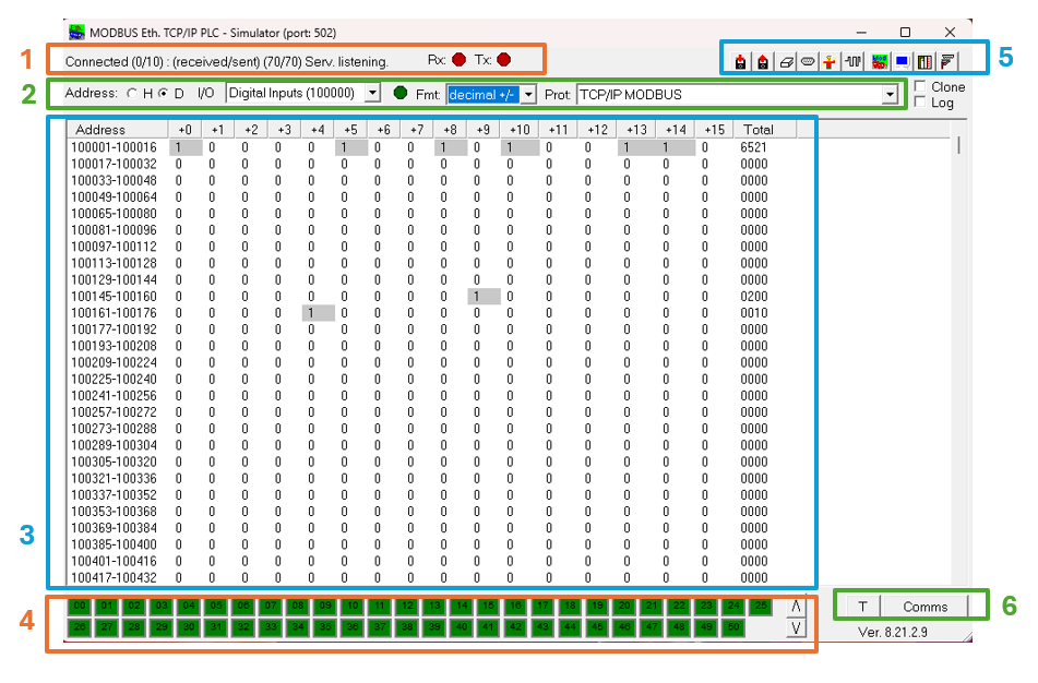 - 所有線圈/暫存器啟動時皆為0(關閉),適合測試初始狀態。