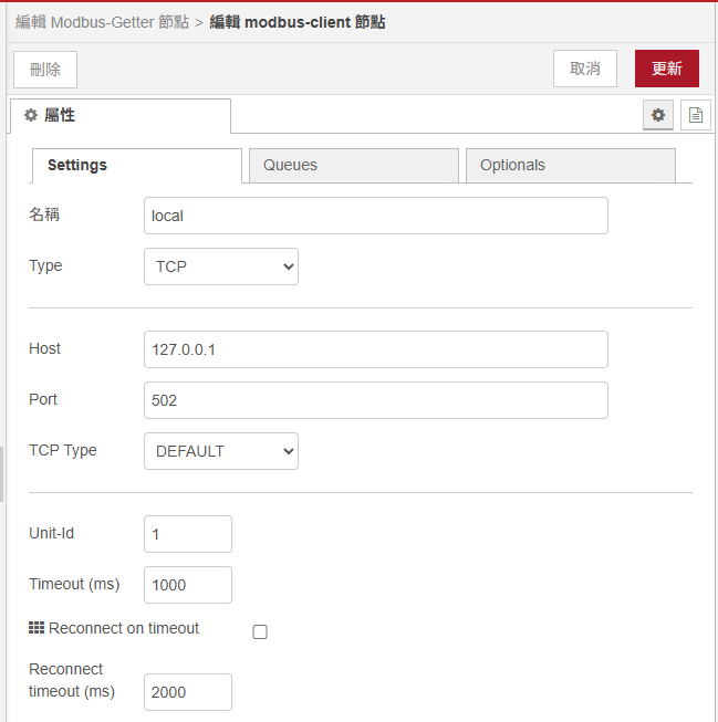 點此看介紹 Node-RED 連接失敗怎麼辦? 建立 Modbus TCP 模擬從站測試