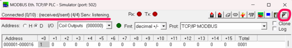這裡使用 ModRSsim2 建立一個 Modbus TCP 從站,來測試 Node-Red 流程的讀取。